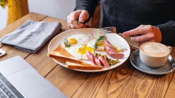 Она посоветовала начинать завтрак не с углеводов и сладкого, а с белка, содержащегося в яйцах, ветчине и сыре, в сочетании с клетчаткой. Только после этого можно есть фрукты и выпечку: сахар после попадания в желудок будет поступать в кровоток намного медленее, объяснила Леон.