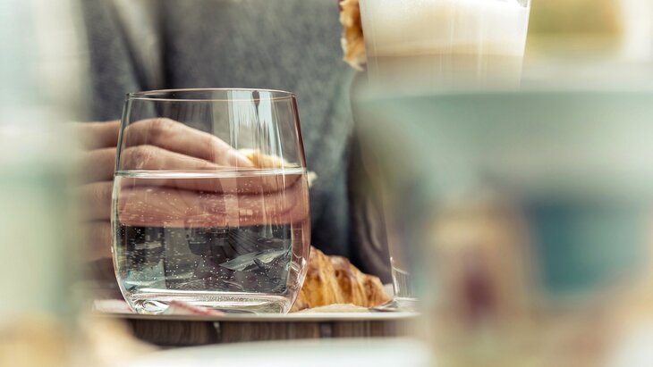 Врач посоветовала выпивать не больше двух стаканов воды за едой, чтобы не выйти из-за стола с переполненным желудком.