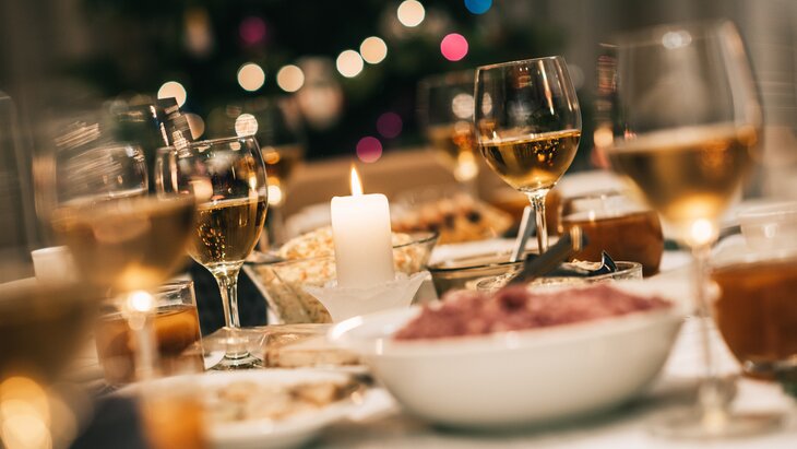 Львиная доля калорий на новогоднем столе приходится на напитки, поэтому врачи советуют заменить газировку и покупные соки домашними лимонадами, морсами с минимумом сахара и минеральной водой. Вместо алкогольных коктейлей и ликеров лучше поставить на стол сухое вино.