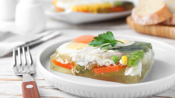 Кроме того, специалист подчеркнула, что во время приготовления холодца следует использовать такие ингредиенты, как нежирное мясо курицы, индейка или рыба, овощи и зелень. Это поможет обогатить его состав витаминами и минеральными веществами.