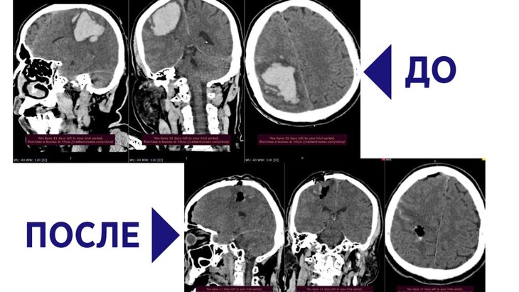 Доставленный бригадой скорой помощи 56-летний мужчина находился в коме. По итогам КТ-исследования врачи обнаружили внутримозговую гематому объемом около 70 миллилитров, которая образовалась в результате геморрагического инсульта.
