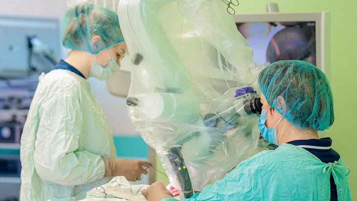 В ходе операции медики воспользовались малоинвазивным методом с помощью микрохирургических инструментов. Через сосцевидный отросток они достигли проблемной зоны, не затронув структур головного мозга, а затем запломбировали дефект специальным материалом.