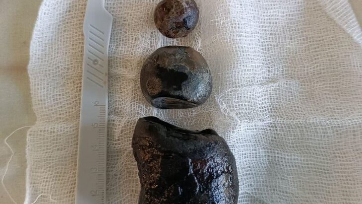 В ходе хирургического вмешательства медики с помощью малоинвазивного метода удалили камни и сам желчный пузырь через небольшие проколы. При этом врачи были вынуждены расширить одно из отверстий для извлечения самого крупного конкремента размером 6 на 4 сантиметра.